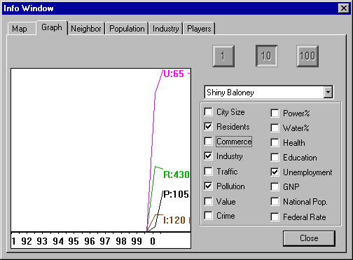 The Graphs Window Reading City Statistics on the 10-Year Scale